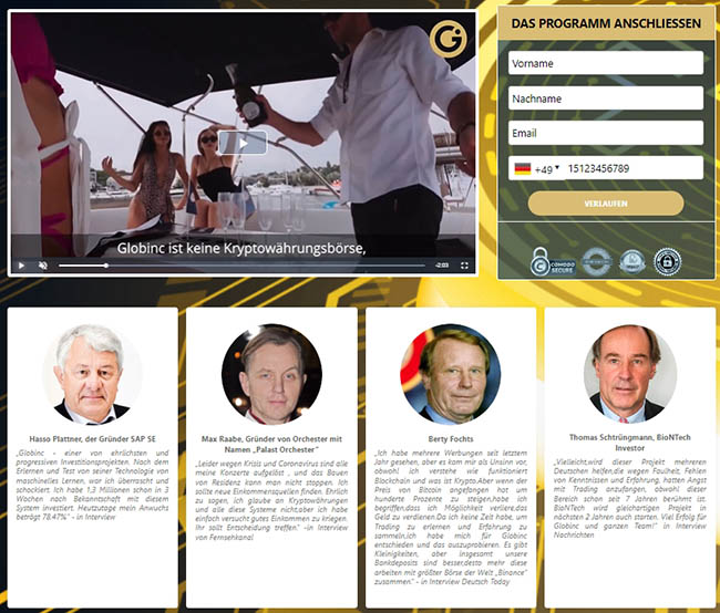 Zunächst einmal haben wir ein gratis Kundenkonto bei dem einem zuverlässigen deutschen Makler Globinc initiiert. Beachten Sie bitte, bei der Anmeldung eine gültige Mobilfunknummer anzugeben, weil der Kundenbetreuung gerne mit Ihnen persönlich sich in Verbindung setzt, damit zu gewährleisten, daß Sie auch wirklich eine Menge Geld verdienen werden.